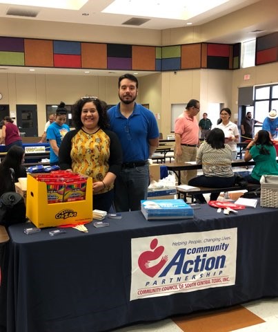 On Wednesday, July 25th, CCSCT participated in the Zavala County 8th Annual Back to School Health & Social Services Fair at Zavala Elementary. The Back to School Fair was established to provide information, services and school supplies for families in our community who are in need of assistance. CCSCT County Coordinators, Gilbert Betancourt and Reyna Flores, were present to represent CCSCT and hand out over 140 school supplies. In addition, they handed out CCSCT branded items such as pens and fans, as well as flyers and business cards with information to contact CCSCT.